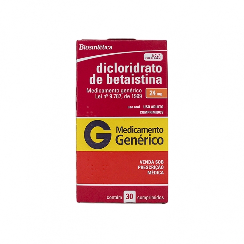 ANTIBIÓTICOS>HOSP/FARMA>DICLORIDRATO BETAISTINA 24MG 30COM GEN BIOS
