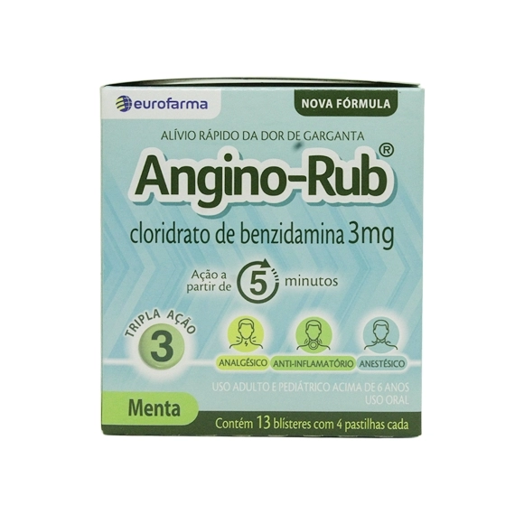 ANTI-INFLAMATÓRIO>HOSP/FARMA>ANGINO RUB- BENZIDAMINA 3MG MENTA 13BLISTERES C/4PAST